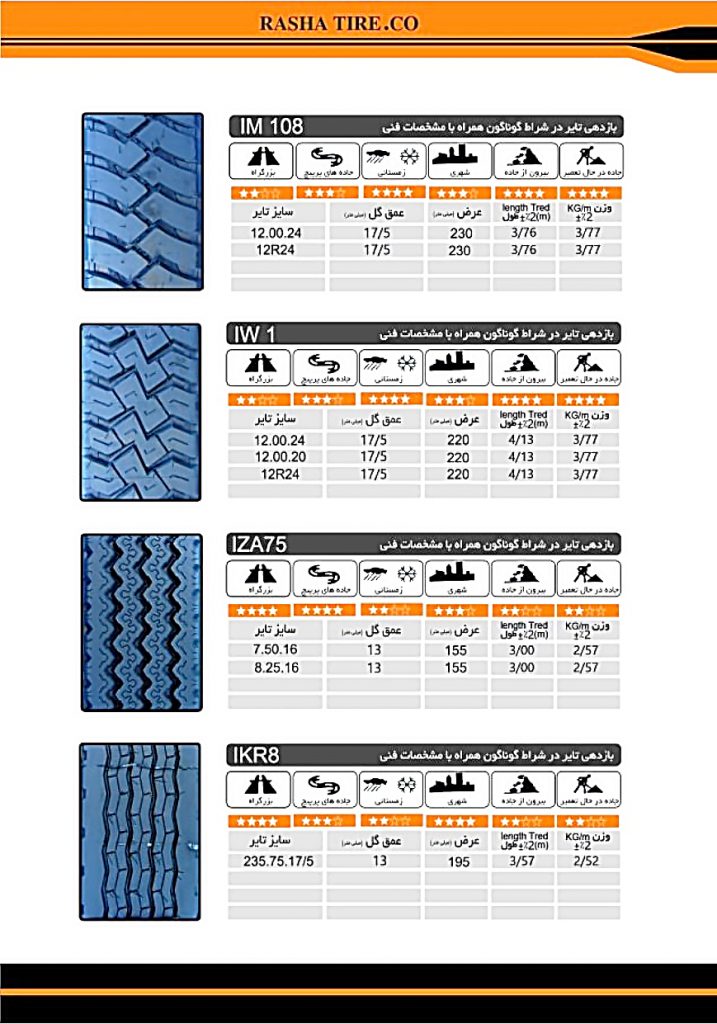 محصولات تولیدی شرکت راشا تایر تاکستان